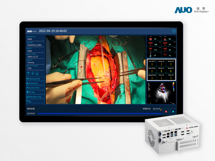 Smart Operating Room Dashboard Solution Integrates Data and Videos to Improve Workflow Efficiencies Responding to digital trends in healthcare and the increasingly complicated operating procedures in surgical rooms, AUO Display Plus, ADLINK and imedtac jointly showcase the Smart Operating Room Dashboard Solution to tackle the problems of physiological data and medical images being variously sourced and separately presented, plus the difficulty of integrating different equipment interfaces. This solution provides an intuitive and multifunctional operating interface. By integrating multiple patient information and surgical images, and helping the medical team to access necessary information when needed, this solution maximizes cost efficiencies and delivers smoother surgical workflows. It supports two video inputs that simultaneously supports recording, capturing, transmission, and display functions. Tags can be used to mark important parts of the operation and drugs used according to the timeline. In addition to improving postoperative patient care, this also increases the availability of training resources for medical personnel.