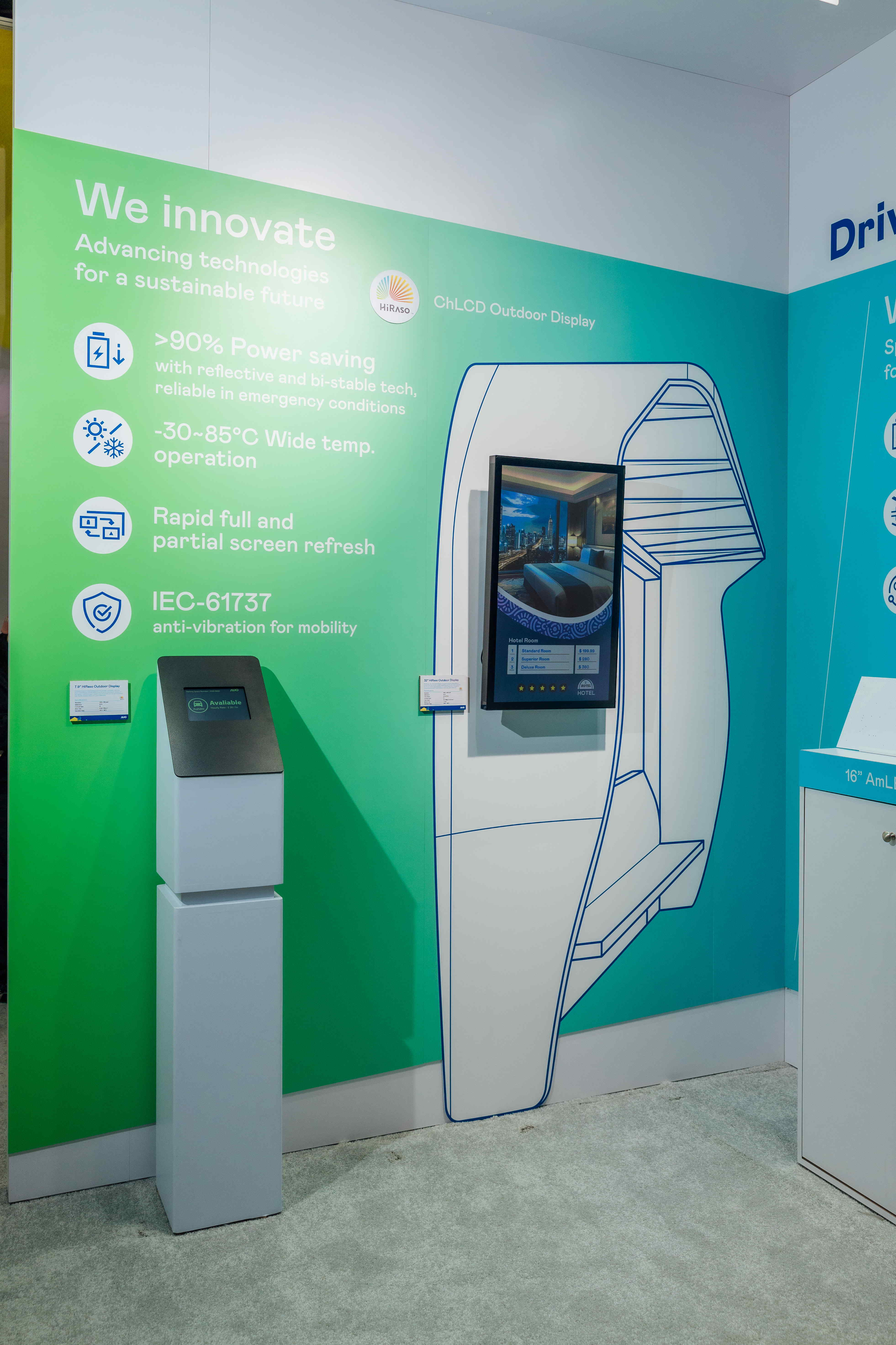 HiRaso膽固醇液晶顯示器運(yùn)用反射環(huán)境光線的方式,呈現(xiàn)影像顯示時(shí)零耗能的環(huán)保省電訴求 ,光線愈強(qiáng)愈能呈現(xiàn)絕佳的色彩飽和度及顯示效果,同時(shí)在攝氏-30度至85度間寬溫的使用優(yōu)勢(shì),為戶外電子看板的新首選 。