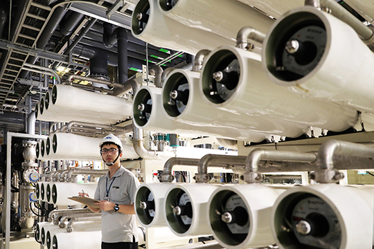 申博太陽城宇沛呼應(yīng)制造業(yè)轉(zhuǎn)型與凈零碳排的趨勢(shì) ,開發(fā)出新一代常溫蒸發(fā) (Room-Temperature Vaporizer) 的零排放設(shè)備,無須仰賴高溫蒸發(fā)進(jìn)行廢水回收 ,運(yùn)用低壓蒸氣作為蒸發(fā)熱源 ,搭配吸附劑移除廢水水蒸氣 ,減少真空泵浦長(zhǎng)期運(yùn)轉(zhuǎn)的能耗 。因?yàn)椴僮鳒囟染S持常溫,可節(jié)省耗能,也減少設(shè)備被腐蝕的風(fēng)險(xiǎn)。此外 ,設(shè)備亦導(dǎo)入 AI 模組即時(shí)監(jiān)控并找出最佳產(chǎn)水條件 ,達(dá)到節(jié)水 、創(chuàng)水與兼顧節(jié)能減碳的效益。