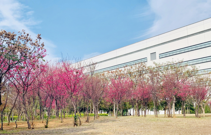 十二年護(hù)樹(shù)有成 ,友達(dá)后里廠區(qū)櫻花步道成為員工賞花一隅 |
